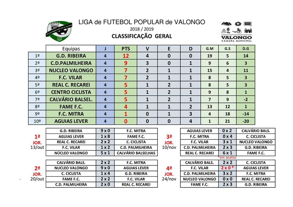 Página inicial > ÉPOCA 2018-19 > LIGA DE VALONGO > 4ªJORNADA
